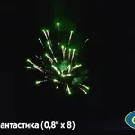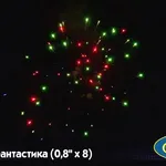 Описание: Каждое пиротехническое шоу - маленькая история, некоторая импровизация, окутанная волшебством, магией, алхимией. Римские свечи "Фантастика" не исключение. Эффектное огненное представление не оставит зрителя равнодушным, украсит любой вечер, а может быть и исполнит заветное желание, если конечно сильного этого захотеть! Эффекты римских свечей "Фантастика" раскрываются на высоте 30 метров. Представление состоит из 8 залпов с удивительными эффектами. В начале шоу из римской свечи вылетают огни зеленого и красного цветов, образуя форму пиона. Далее появляются звезды зеленого цвета, которые оставляют за собой золотистый, пышный след. Финальным эффектом являются сферы сине-зеленого оттенка и красно-синие сферы, в сочетании с облаками треска или белым мерцанием. Эффекты: 1. Сине-красно-зеленая сфера (пион). 2. Зеленые звезды с пышными хвостами (кокос) и треск. 3. Сине-зеленая сфера (пион) и белое мерцание. 4. Красно-синяя сфера и облако треска (хризантема).
