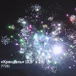 1. Множество золотых ниспадающих нитей (парча) и красные звезды. 2. Краснобелая мерцающая сфера (пион). 3. Множество золотых ниспадающих нитей (парча) и синие звезды. 4. Красно-зеленая мерцающая сфера (пион). 5. Красочная концовка. ЗАЛП: Зеленофиолетовая сфера (пион) и облако треска (трещащий дождь).