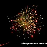 1. Разноцветные кометы разрываются сферами из: золотых форсов с красными огнями на концах и зеленых мерцающих огней. 2. Золотых форсов с зелеными огнями на концах и белых мерцающих огней. 3. Золотых форсов с фиолетовыми огнями на концах и разлетающихся трещащих искр. 4. Золотых форсов и множества трещащих сфер.